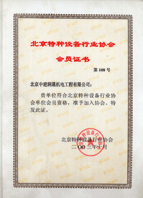 2003年特種設(shè)備行業(yè)協(xié)會(huì)會(huì)員證書