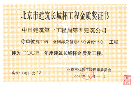 2005年度北京市建筑長城杯工程金質(zhì)獎